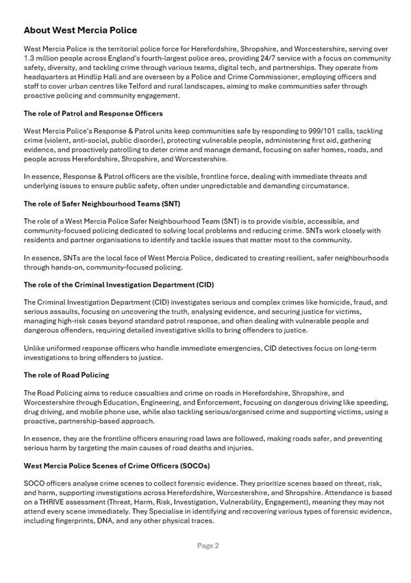 What’s in this month’s newsletter? About West Mercia PoliceUpdates on local concerns and actions takenGeneral SNT news and informationUseful crime prevention information and security adviceUpcoming events and engagement opportunities Get Involved