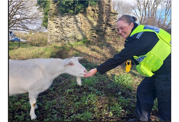 PCSO Elle Hankin - ‘’On my patrol today, I had the opportunity to feed our 2 local goats who live on Llantrisant Castle Grounds. Nice to meet you Dewi and Griff.’’