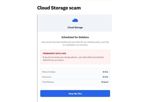 Scam email on Cloud Storage |