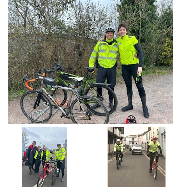 Yesterday, I had the honour of accompanying Radio One's presenter Greg James as he cycled through West Mercia Policing area and more importantly through Worcester, on day three of his 1000km challenge on a tandem bike. I joined them at Ross On Wye and left them at Droitwich. I was tired after doing just over 40 miles, but that was only half of the distance for that day for Greg. For a man on a heavy tandem bike, he had a good pace on him (even up those killer hills). The amount of people out on the roadside lining the route was absolutely amazing and I don't think there was a gap of more than 30 seconds where I didn't see someone cheering him on. As we went through Worcester, Greg commented several times on haw amazing it was to see so many people out, even in the heavy rain and wind. Thank you to the people of Worcester who were very well behaved (so I didn't have to stop my bike to deal with anyone and have to try and catch him up again). I had my own support team with PC's Molly Smith and Dee Stanley who also assisted with traffic management.