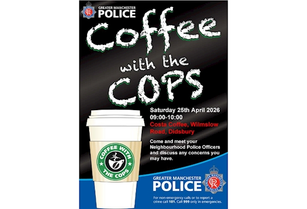Your local Safer Neighbourhood Team will be at Costa Coffee at Didsbury on 25th April 2026 at 09:00-10:00.