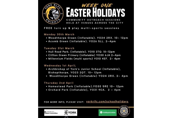 FREE activities over the Easter Holidays for the little ones. Our friends at York RLFC Knights are holding multi-sports sessions. Please see attached poster for more information.