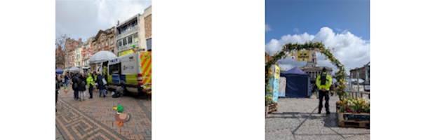 Our interactions included: • Speaking with residents, visitors and local businesses. • Sharing crime prevention and ASB advice and handing out security devices, Notts Police giveaway items & leaflets. • Chatted with families and children enjoying the market - many trying out Police uniform or equipment! • Offered career advice and answered questions about policing. • Helped with directions and provided general support to anyone who needed it. • Obtained local intelligence - invaluable to local officers!