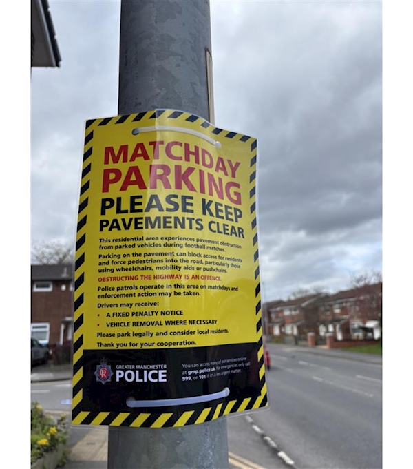 Following complaints from local residents in the area of Gorton Lane, signs were displayed informing individuals that obstructing the highway is an offence.