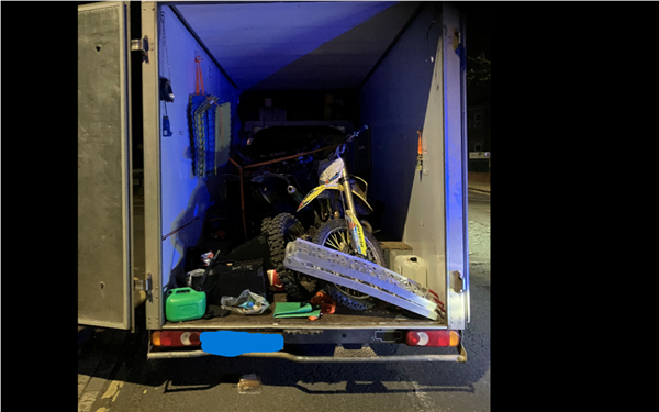 Tracking the vehicles movements, we stopped the van returning to the Durham area. Inside the van were six off road motorbikes, and as suspected, the van was being driven without insurance. The vehicle was therefore seized, along with the bikes within.