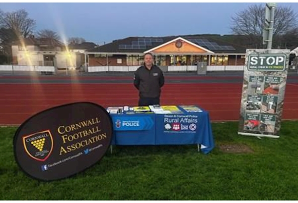 Devon & Cornwall Police has been working alongside local sports clubs in Cornwall to take a stand against thieves and organised crime groups following a run of burglaries in the county. An event bringing together many clubs from across Cornwall, hosted by the Grounds Management Association, saw officers from the Rural Affairs team attend to promote good practice in keeping high-value equipment safe and secure. The team were invited to speak at the event after officers noted a run of sports clubs targeted by burglars over the winter period, where thousands of pounds worth of tractors, mowers and other equipment were stolen. Rural Affairs officers PC Skinner and PC Orchard attended the event. They said: “The burglaries had a significant financial impact on local grass roots clubs and their attendees, from children’s sports clubs to adult football, so many felt the effects of these thefts. “Sport clubs house a range of equipment, including some farm and plant machinery, all of which are vital to their daily running. “That’s why it’s important for us team up with partner agencies at prevention events like these in Cornwall, working with clubs to help protect their equipment from thieves, prevent further incidents and deter offenders. “It’s also a great reminder about how collaboration and awareness can make a real difference in keeping everyone, including property, safe. “I’d also like to thank the Cornwall FA and the Grounds Management Association – they have been key partners in helping to raise awareness of how clubs can keep their high-value equipment and machinery safe. Advice on storing equipment, security tips and DNA property marking was shared during the event and all participants went away with a Secured by Design approved forensic property solution to mark their equipment. This technology allows police to reunite the stolen property to its rightful owner if found. The event was hosted at Par Track near St Austell, organised by Cornwall Football Association and Grounds Management Association. Useful crime prevention advice is available on the Devon & Cornwall Police website: Crime prevention advice | Devon & Cornwall Police Clubs who would benefit from further advice are encouraged to contact their local neighbourhood policing team. Find your nearest police public enquiry office here: Your area | Devon & Cornwall Police | ||