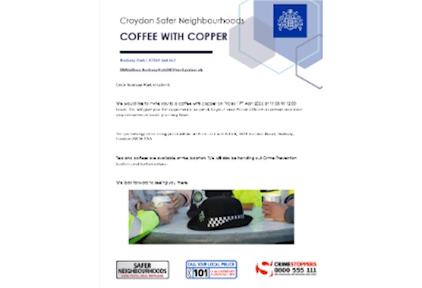 We would like to invite you to a coffee with copper on Friday 17th April 2026 at 11:00 till 12:00 hours. This will give you the opportunity to speak to your local Police Officers in person and raise any concerns or issues you may have.