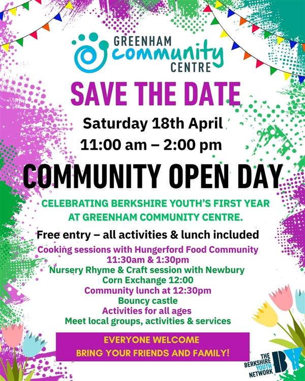It’s not long to go now until the Community Open Day at Greenham Community Centre on Saturday 18th April. The day will include a range of activities for all ages, refreshments, a community lunch, and stalls hosted by local partners. The entire event is free to attend. We are hoping it will be a fantastic opportunity for people to come together, see what’s on offer at Greenham, and connect with local services and activities.