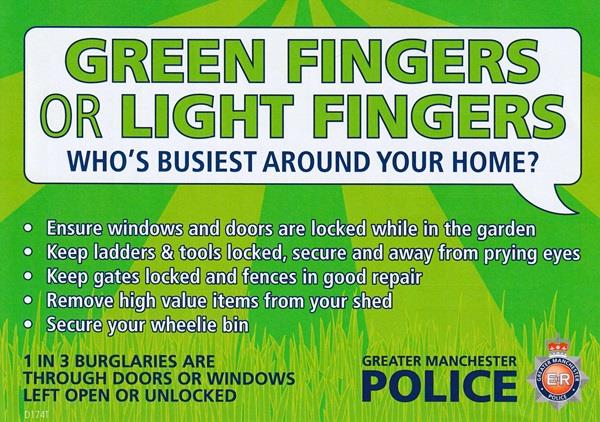 SECURE YOUR GARDEN FOR THE SUMMER. It's easy to forget that our gardens can also become a target for opportunist thieves. Garden furniture to tools, bikes and BBQs can be stolen. Lock it away or lock it down. Where possible, secure items in a shed or garage or anchor or lock larger items like bikes and equipment. The vulnerable points of access are side gates. An unlocked or a weak gate can offer easy access to your property. Upgrade simple latches to more secure locks and get into the habit of closing gates properly.