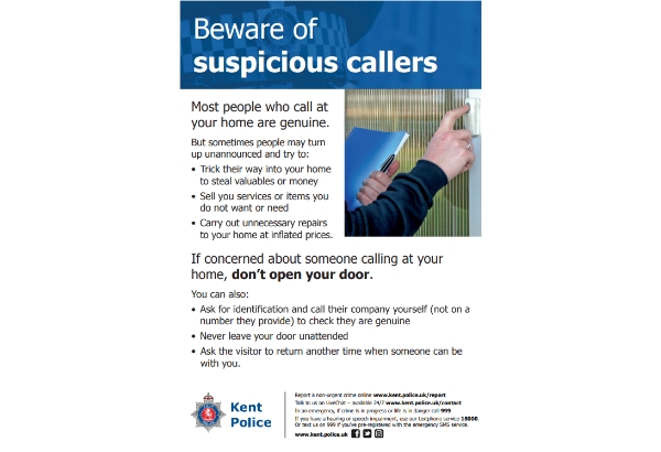 Kent Police have received reports of cold callers operating in the Cliftonville area in recent days. As such, I wanted to raise awareness of how to spot cold callers and how to report any concerns.