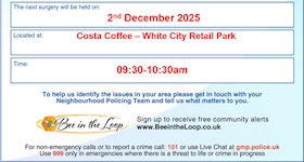 Dear resident, Your local Neighbourhood Policing Team will be at Greggs, Station Road on Mon 1st D...