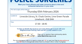 I will be holding a Police Surgery at Cheadle Library between 3:00 PM - 4:00 PM on Thursday 29th Jan...