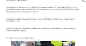Dear ward member, On Tuesday 24th February 2026 at 14:00 hours, your local officers are holding a c...