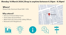 Battersea Sector Neighbourhood Watch surgery - Monday 16th March 1830-2030hrs