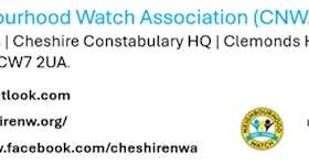 Hi Resident, This is a message from Cheshire Neighbourhood Watch Association (CNWA). We are curr...