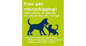 RSPCA are holding a FREE pet microchipping for Clifton residents. Date/Time - Monday 4th May, 11am...