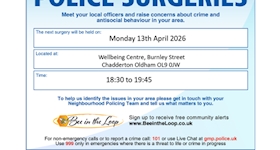 Officer(s)from your local neighbourhood policing team will be holding a Walk & Talk surgery ...
